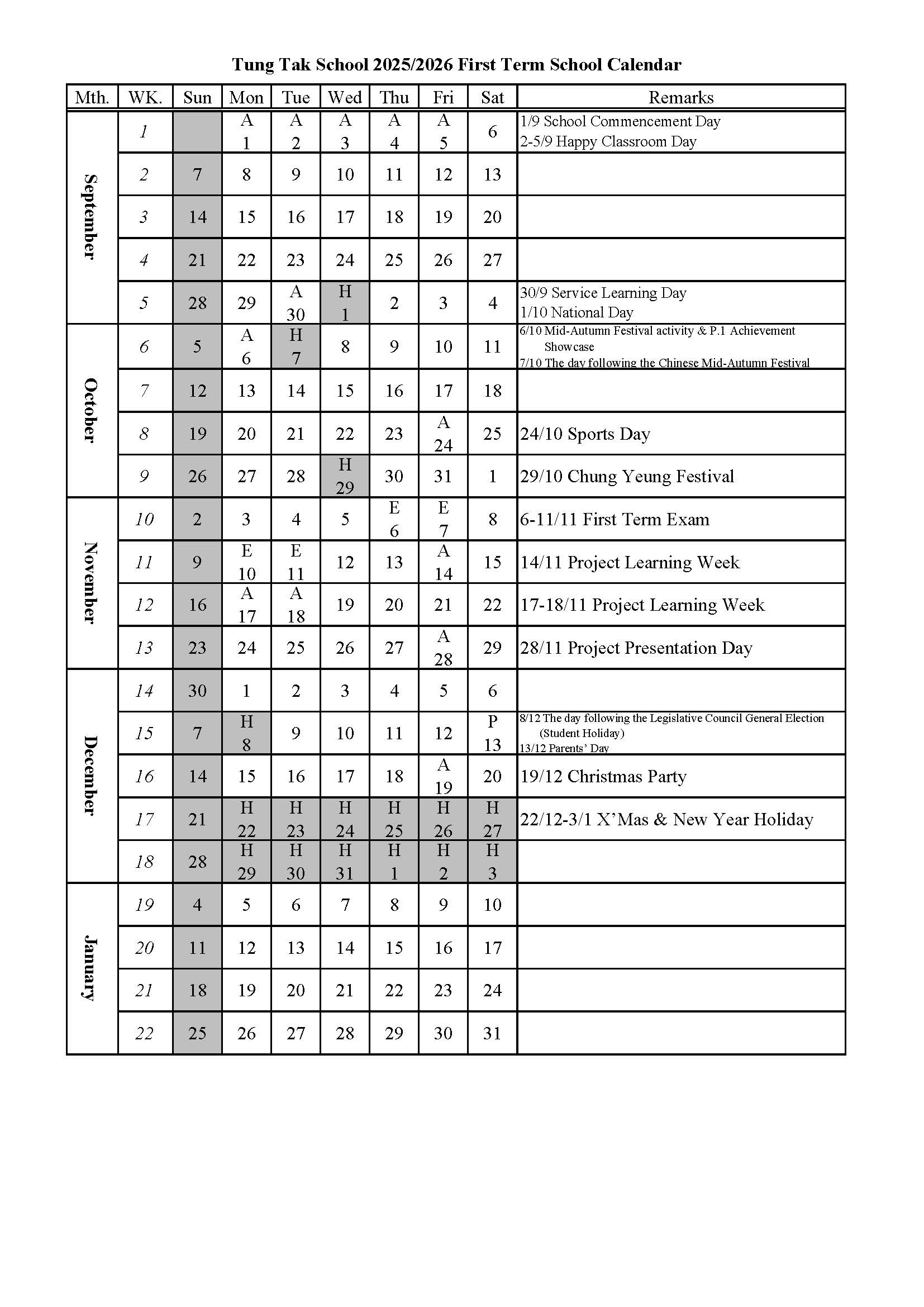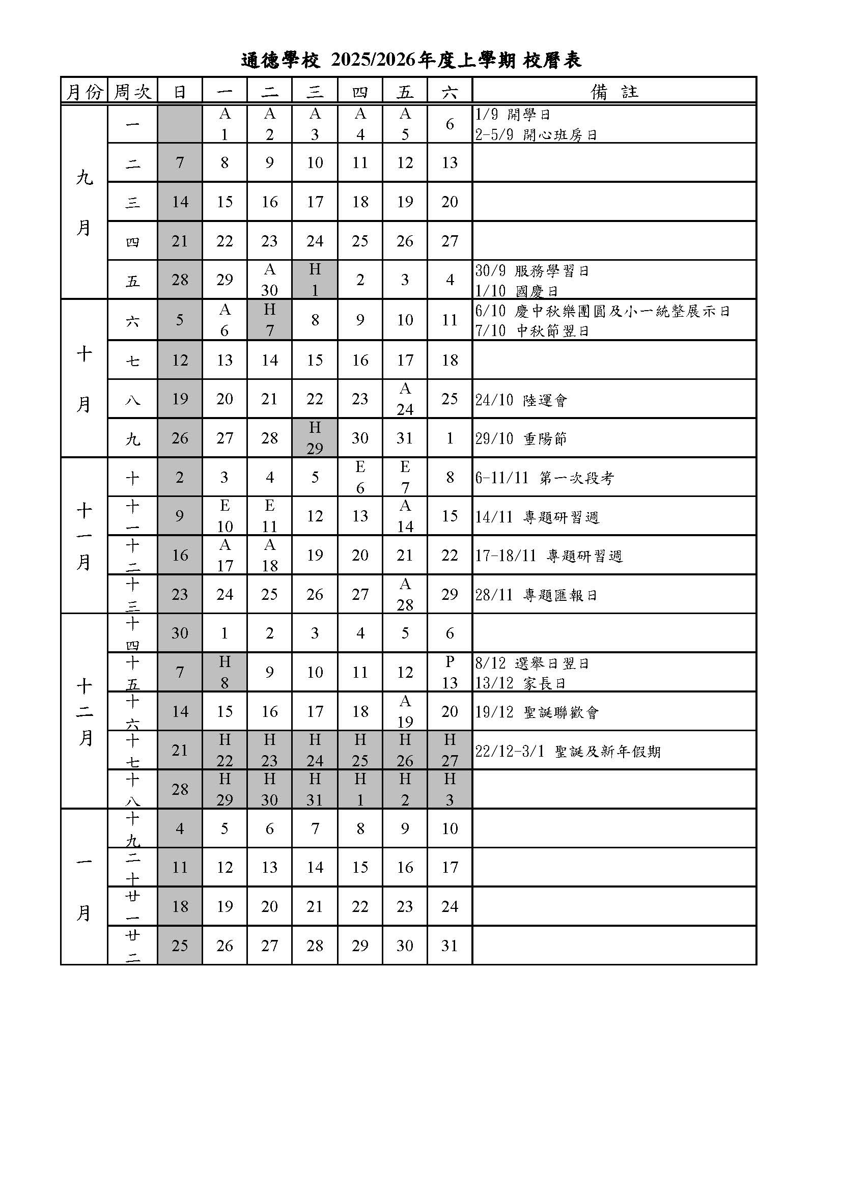 校曆表