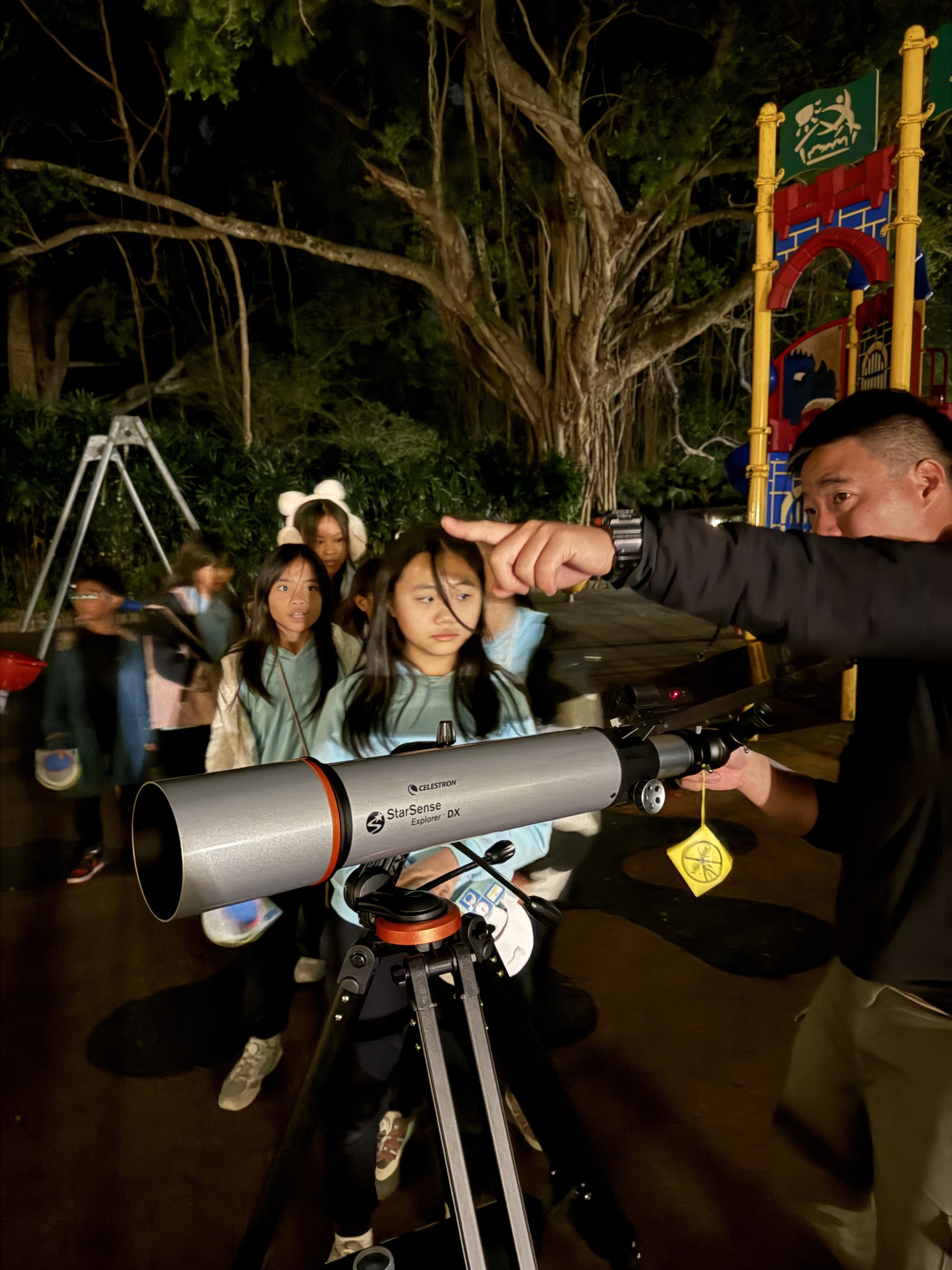 喺通德森探周,留港活動嘅小朋友一樣有精彩嘅節目! 忙碌嘅考試周剛過去,小朋友喺活動就用最純粹嘅五感,去西貢呢個香港後花園重新同大自然做朋友!日間活動:Eco Art|變身自然藝術家 唔洗畫筆!細路仔用雙手摸、用鼻嗅、用眼睇、用耳聽、用腦諗,小朋友選擇嘅每一粒種子,都代表住生命中重要嘅一員!各位小朋友最後整咗出獨一無二嘅「天然果實風鈴」! 風一吹叮叮噹噹響,係藝術、係人生,亦係同森林合作嘅交響樂!夜晚重頭戲:觀星體驗|變身夜空解密員 夜幕低垂,同學抬頭仰望,學習辨認星座同畫星圖,喺無垠嘅星空下感受宇宙嘅深邃同寧靜!雖然當晚天公不造美,小朋友睇唔到星星,但校長特登遠道而來嘅熱情,早已為大家心裏掛起咗星星!喺第一日森林活動,同學學識咗「感受」 ,唔係死記硬背,而係用五感去體驗、去連結、去學識愛護大自然!