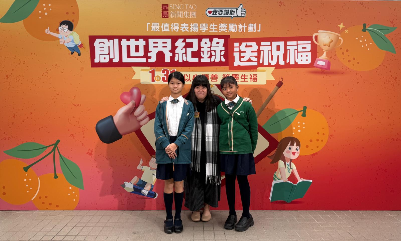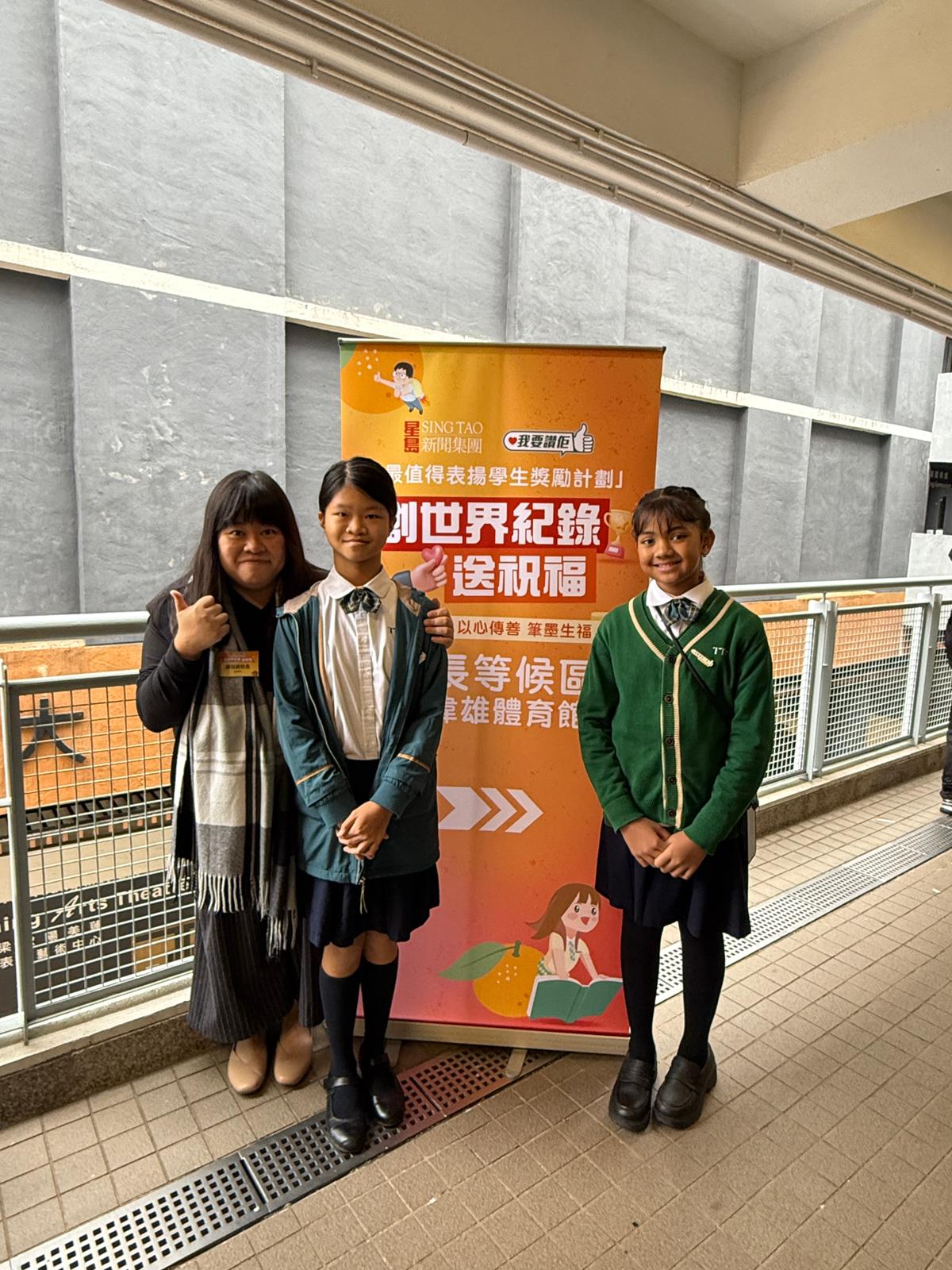 好開心同大家分享一個喜訊!我們學校的5A班Umaima同6A班張依勤兩位同學,喺星島新聞集團舉辦嘅《我要讚佢》最值得表揚學生獎勵計劃中,憑住出色嘅表現,成功獲選為「最值得表揚學生」!活動主題係「以心傳善 筆墨生福 共創世界紀錄」。
