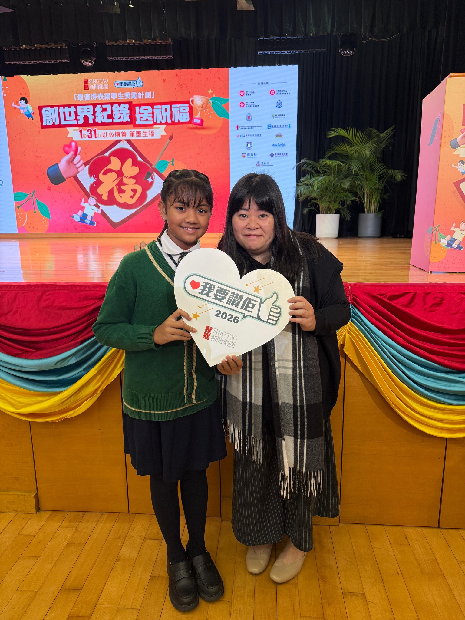 呢次活動由星島新聞集團主辦,邀請咗教育局局長蔡若蓮女士JP、民政及青年事務局局長麥美娟女士SBS JP、文化體育及旅遊局局長羅淑佩女士JP 等重量級嘉賓主禮。顏校長、Umaima同依勤與現場所有人一齊,用書法筆一齊寫下咗好多個「福」字,齊心合力挑戰創下世界紀錄!喺農曆新年即將到來嘅美好時刻,佢哋用呢份心意,向全港市民送上最溫暖嘅祝福。