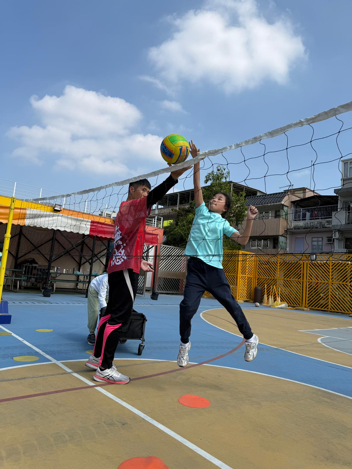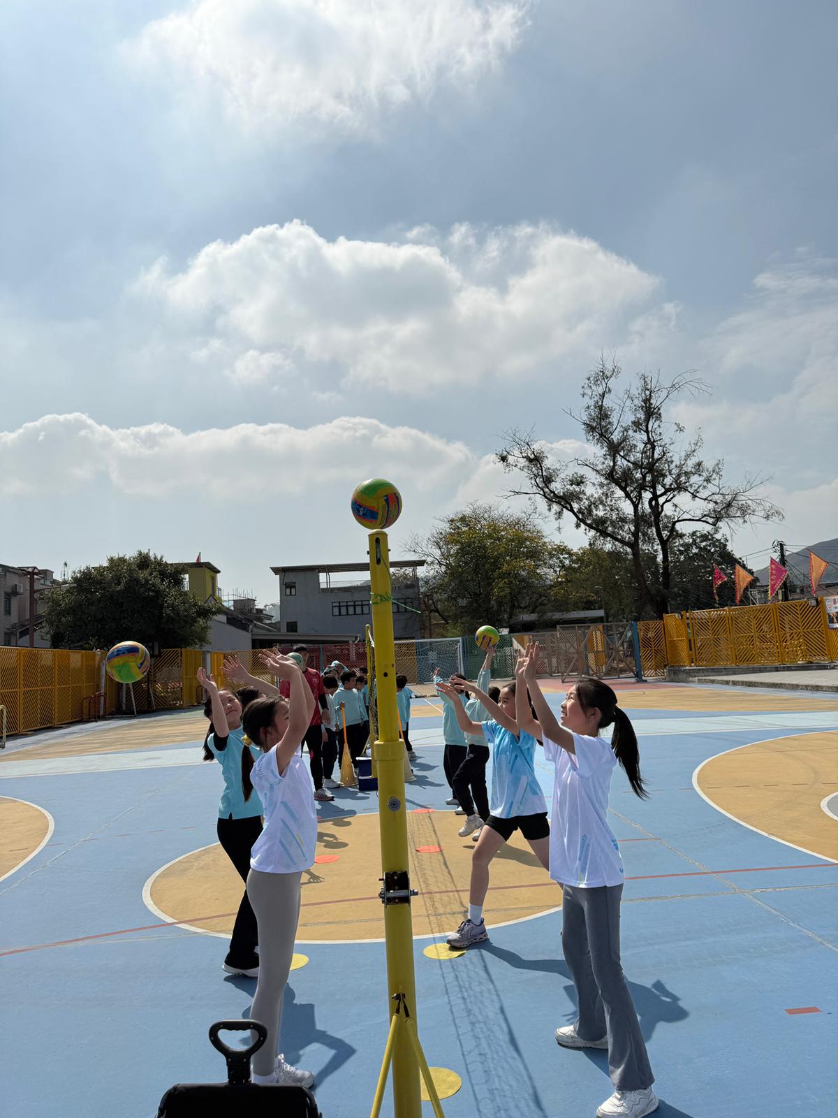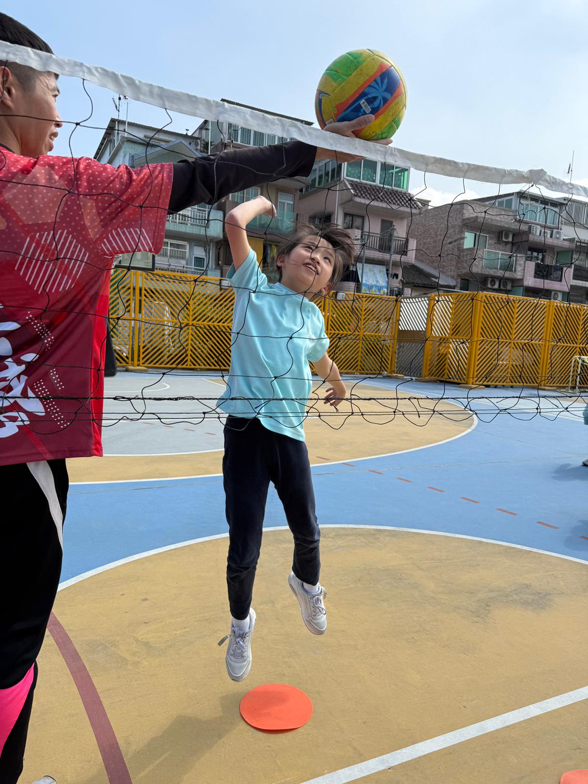 上星期四年級體育堂進行排球訓練,喺藍天之下,小朋友化身排球小將,學習上手及下手傳球,以及學習殺波,小朋友凌空一躍,就將排球打過對面網,個個英姿勃。雖然玩到汗流浹背,但大家都玩得高興,學得開心。